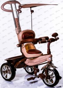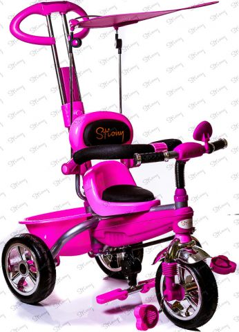 Велосипед 3-х кол. Stiony TRIKE, надувн.колеса, управ.ручка, капор, разъемный бампер, корзина, скл.подножка, крылья, зеркало.